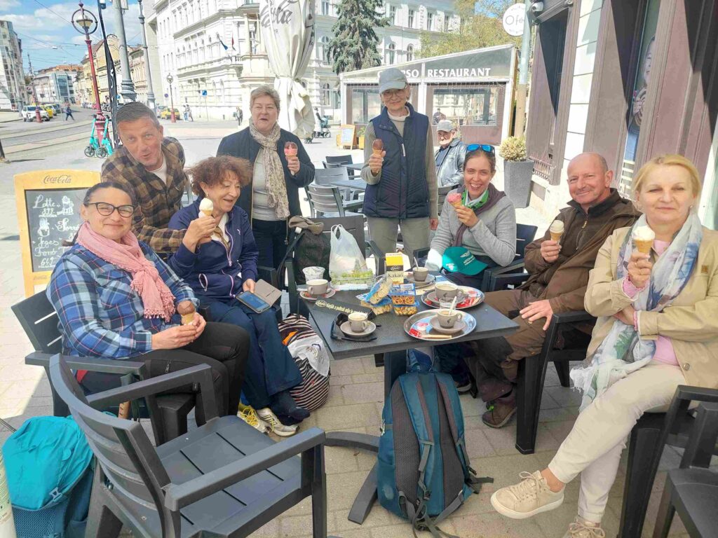 A Széchenyi szobor tövében pedig Seresné Horváth Zsuzsanna önkormányzati egyházügyi referens hívott meg fagyira minket.